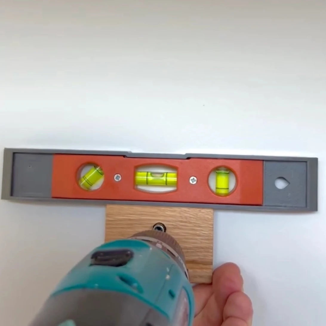 Place your spirit level on top of the wooden blocks. Adjust as needed so it sits perfectly straight, then tighten the screw fully. This will make sure your wall tapestry looks aligned with your room.